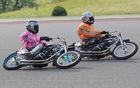 アスファルトのオーバル型コースを、専用のオートバイで周回するレースです。